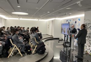 いざ大使館に到着すると、職員の方々の温かい歓迎を受け、和やかな雰囲気の中でジルベルト大使のお話が始まりました。事前に時間をかけて準備をしてくださったことがよくわかるスライドを使いながら、非常にゆっくりと基本的な英単語をたくさん使って、1時間以上ポルトガルについて、また日本との結びつきについてお話しをしてくださいました。後にジルベルト大使は在日大使の中では最も若く、最短で大使に就任された方だと、藤崎理事長から伺いました。また、この時は本国ポルトガルでは大統領再選挙の最中で、大変お忙しい中でお時間をいただいたということも伺い、大変ありがたく思うとともに恐縮してしまいました。