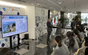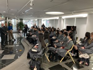 1月19日午後、高校1年葵、Iris組は有栖川公園近くにあるポルトガル大使館を訪問しました。訪問前にグループで探究をした、普段あまり馴染みのなかったポルトガルという国についての予備知識や、簡単な挨拶を反芻しながら、長い坂道を歩いて行きました。周辺には複数の国の大使館もあり、警察官の方がたくさん配備されていて、進むにつれて緊張感が増していくようでもありました。