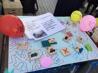 カルタ遊びには子供を中心に大勢の方がブースに立ち寄って下さり、プレゼント用に用意した100枚の間伐材コースターは2日目の昼に全てなくなる程の盛況ぶりでした。