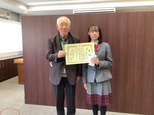 令和5年度 中学生の「税についての作文」で、中学3年生の平岡帆乃実さんが優秀賞を獲得しました!おめでとうございます!