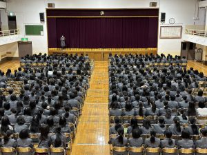 2月28日(水)、今までお世話になった3年生の先輩方に感謝の気持ちを込めて、送別会を行いました。全校生徒が講堂に集まり、無事開催できてとても嬉しく思います。