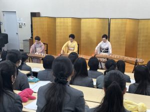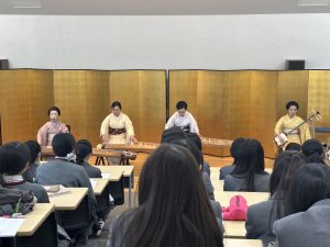 12/1(月)箏曲の岸辺美千賀先生をお招きして邦楽の演奏会を行いました。