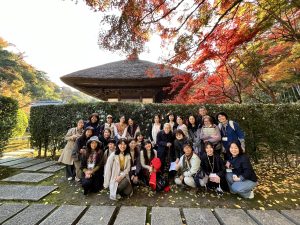 今年も随筆家の大貫先生をお招きしまして、史跡巡りを行いました。穏やかな秋晴れのもと紅葉を楽しみながら、長寿寺と浄智寺を巡りました。今回のメインのテーマは、足利文化。足利尊氏の武士としての活躍だけでなく、芸術家としての一面をユーモアを交えてお話しいただきました。秋の景色と鎌倉の文化に存分に浸ることのできた1日でした。