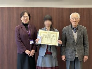 また、団体として北鎌倉女子学園中学校が感謝状を授与されました。