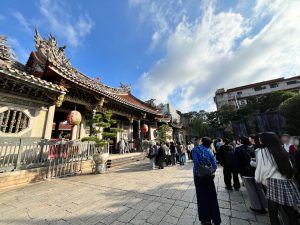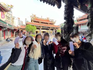 3日目は、まず初日に行くことができなかった龍山寺に行きました。たくさんの神様が祀られていますが、目を閉じ、じっと手を合わせている姿を見ることができました。おみくじをいただいて、お寺を後にしました。