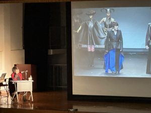 また、普段は目にすることの少ないファッションショーの映像も披露されました。洗練された衣装デザインと圧巻のパフォーマンスに、生徒たちは一堂に魅了されていました。