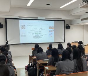 日立ヴァンタラ株式会社の方々は、外国のお客さんと関わる際に、相手の国の文化を考慮し、早めに連絡を取ることを大切にしているそうです。このお話を通して、大学生活の中で留学生と関わる場面でも、文化や宗教の違いを理解し、相手を思いやった行動を心がけていきたいと思いました。そしてアナウンサーとして活躍されている我妻さんのお話では、私たちにとって馴染みのあるアナウンサーという仕事の楽しさや大変さ、撮影現場の裏側での工夫などを知ることができました。また、発声や発音を意識することで聞こえ方が全く変わるということを、実践を通して教えていただきました。発表の際だけでなく、日頃から口を大きく動かして話す練習を大切にしていきたいです。(3年葵組)