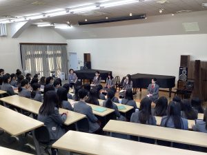 今日は、今年度の年内入試で進路が決定した高校3年生を迎え、講堂では高校生が、音楽ホールでは中学2・3年生が、体験談を聞く貴重な機会となりました。進路を決定した時期や志望理由書の添削、面接練習や対策、さらには実際の試験の流れや当時の心境など、具体的なお話を伺うことができました。先輩方の経験談を通して、生徒たちも自分自身の進路について考えながら話に耳を傾けていました。高校1年生にとってはまだぼんやりとしていた夢、高校2年生にとっては目前に迫る自分の未来について、それぞれが思いを巡らし、自分事として真剣に受け止める時間となったようです。今日の話をきっかけに、自分の将来の輪郭がよりはっきりと見えてきた人も多かったのではないでしょうか。
