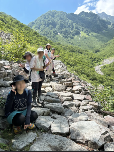 夏には上高地へ合宿に行き、雄大な自然に囲まれながら活動しました。山に登るだけでなく、山でも簡単に作れるサツマイモご飯や筍ご飯を部員全員で協力して作り、自然の中で食べる食事の楽しさを味わいました。また、山を登りきった後にはアイスクリームを食べ、頑張ったあとのご褒美として楽しい時間を過ごしました。